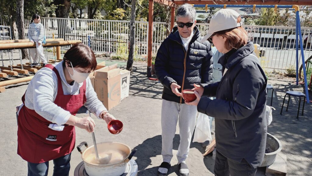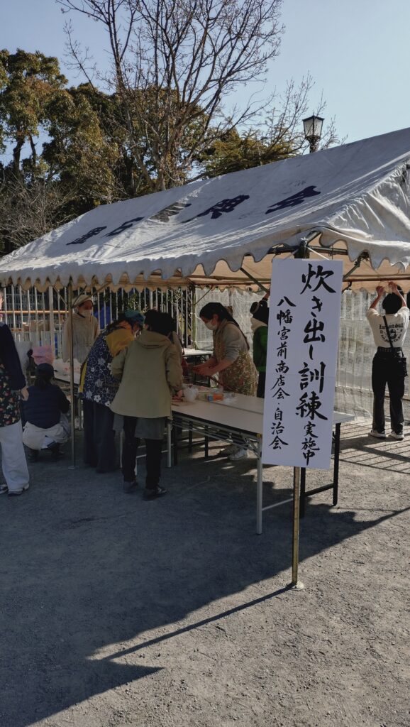 3月15日(日)、今年も鶴ヶ岡幼稚園の園庭をお借りして八幡宮前商店会・自治会合同の防災炊き出し訓練を行いました。今回は隣接する横町町内会からもご参加いただき、総勢約60名での賑やかな訓練となりました!