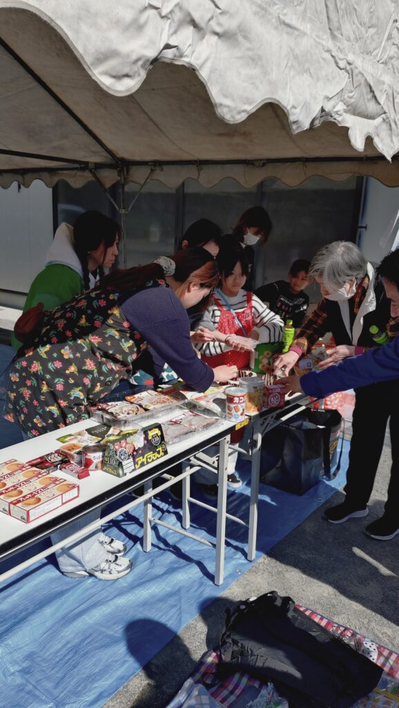 前回同様に今回も、訓練と並行して防災グッズや防災食(非常食)の紹介、試食も行いました。日頃から少しずつでも用意をしていき、非常時に備えたいですね。最近は非常食も美味しいものが増えてきました♪