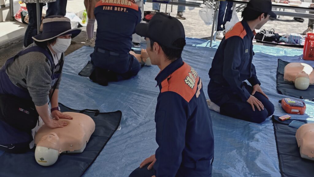 今回は鎌倉消防署のご協力で初期消火訓練、応急手当、人体模型やAEDを使用しての救命訓練などの講習を行っていただきました。浄明寺出張所の皆様、どうもありがとうございました!