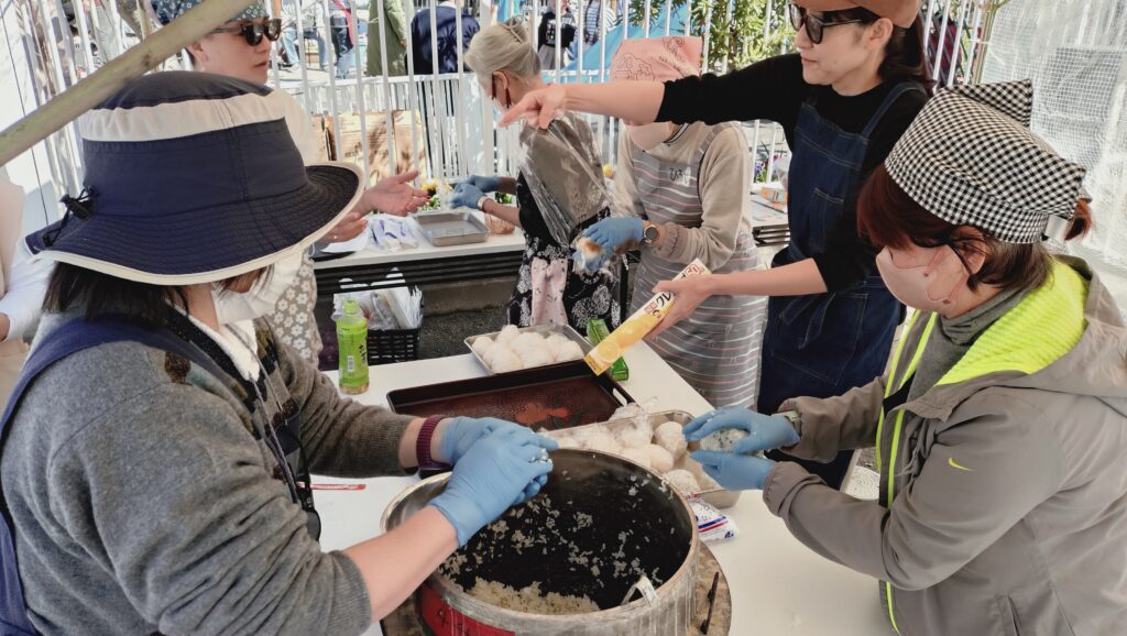 お米が炊き上がり、ここからいよいよおにぎり作りと配布の準備です。役割分担を明確にすることで作業がスムーズに進んだとの声もいただきました。